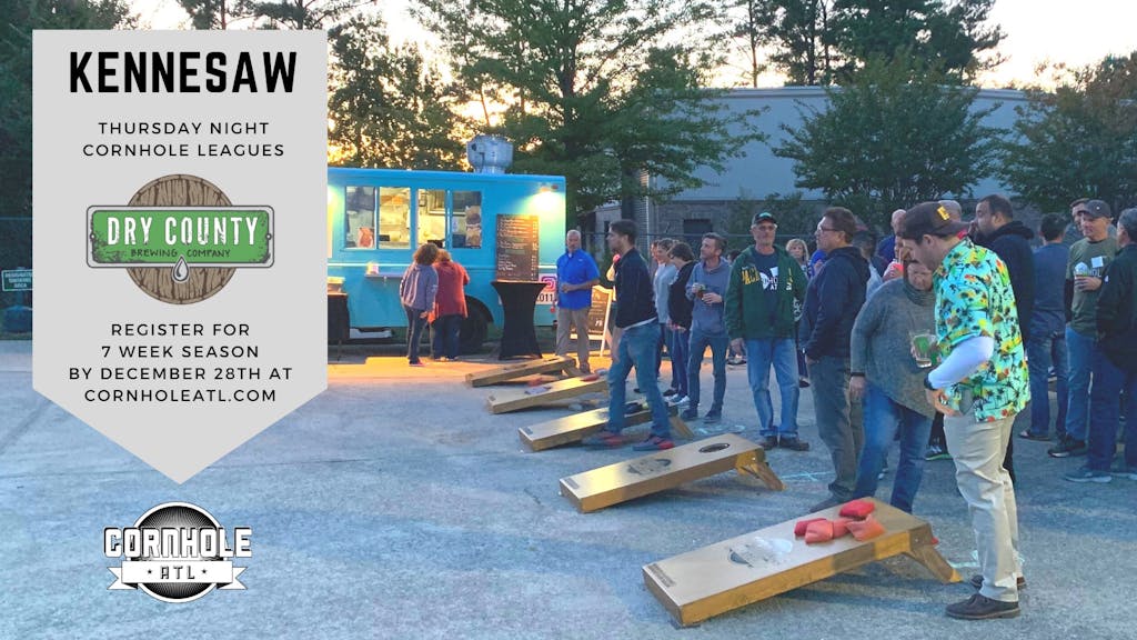 Join us for our 7 week outdoor winter cornhole league in Kennesaw at Dry County Brewing Company on Thursday nights!
